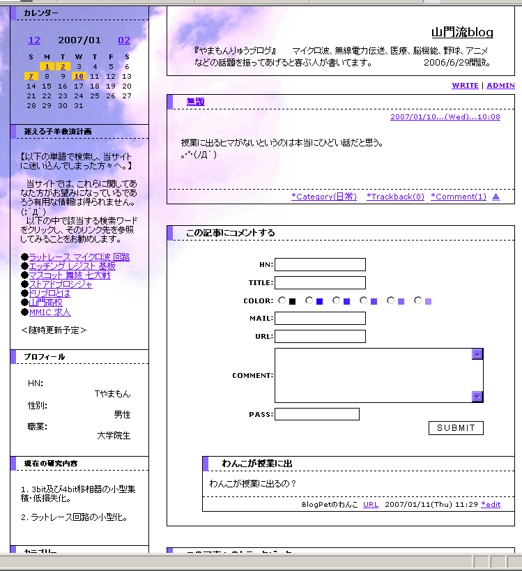 ところで、自分が書いたエントリに対してBlog Petが定期的にコメントを投稿してくれるのですが、前回のエントリに対するコメントが絶妙だったので、ここで報告。