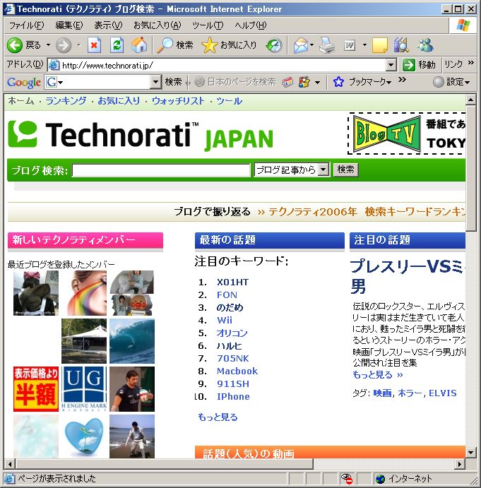とある本で、タグを使ったブログ検索が出来るとかいうことでTechnoratiが紹介されていた。